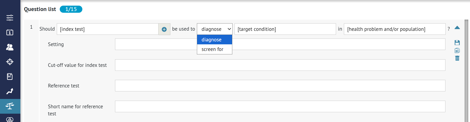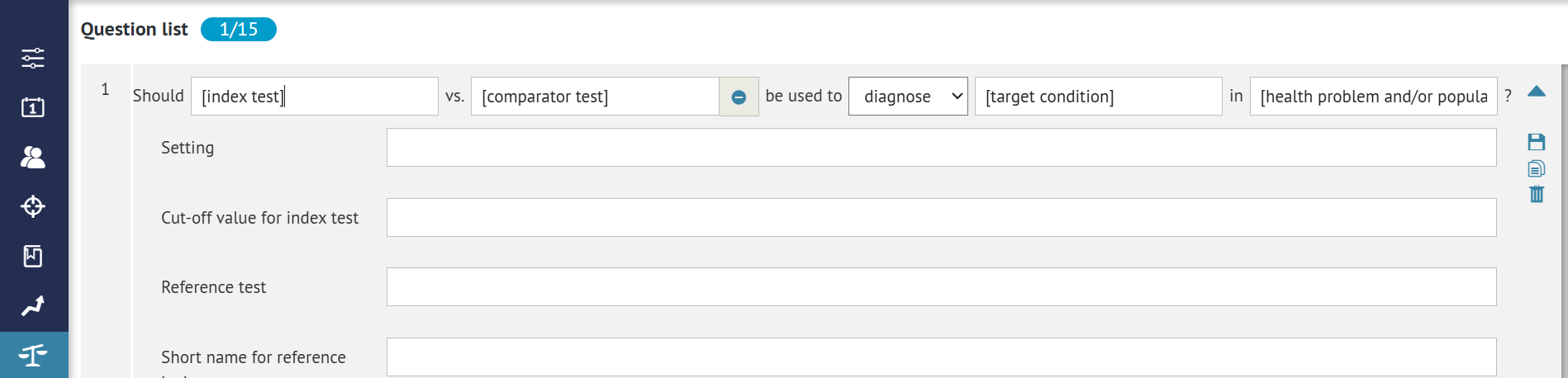 Below, you can see the available evidence table formats for the management questions. You can also learn how to create and complete management questions in our step-by-step manual.